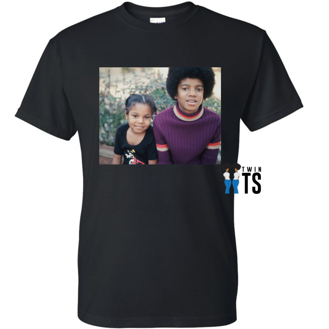 Celebrate the early days of two legendary icons with this timeless T-shirt featuring a young Michael and Janet Jackson sitting side by side. Capturing a rare and heartwarming moment, this design showcases the sibling bond that would later shape music history. With Janet around 2 or 3 years old and Michael just a few years older, this image is a nostalgic tribute to their journey from childhood to superstardom.