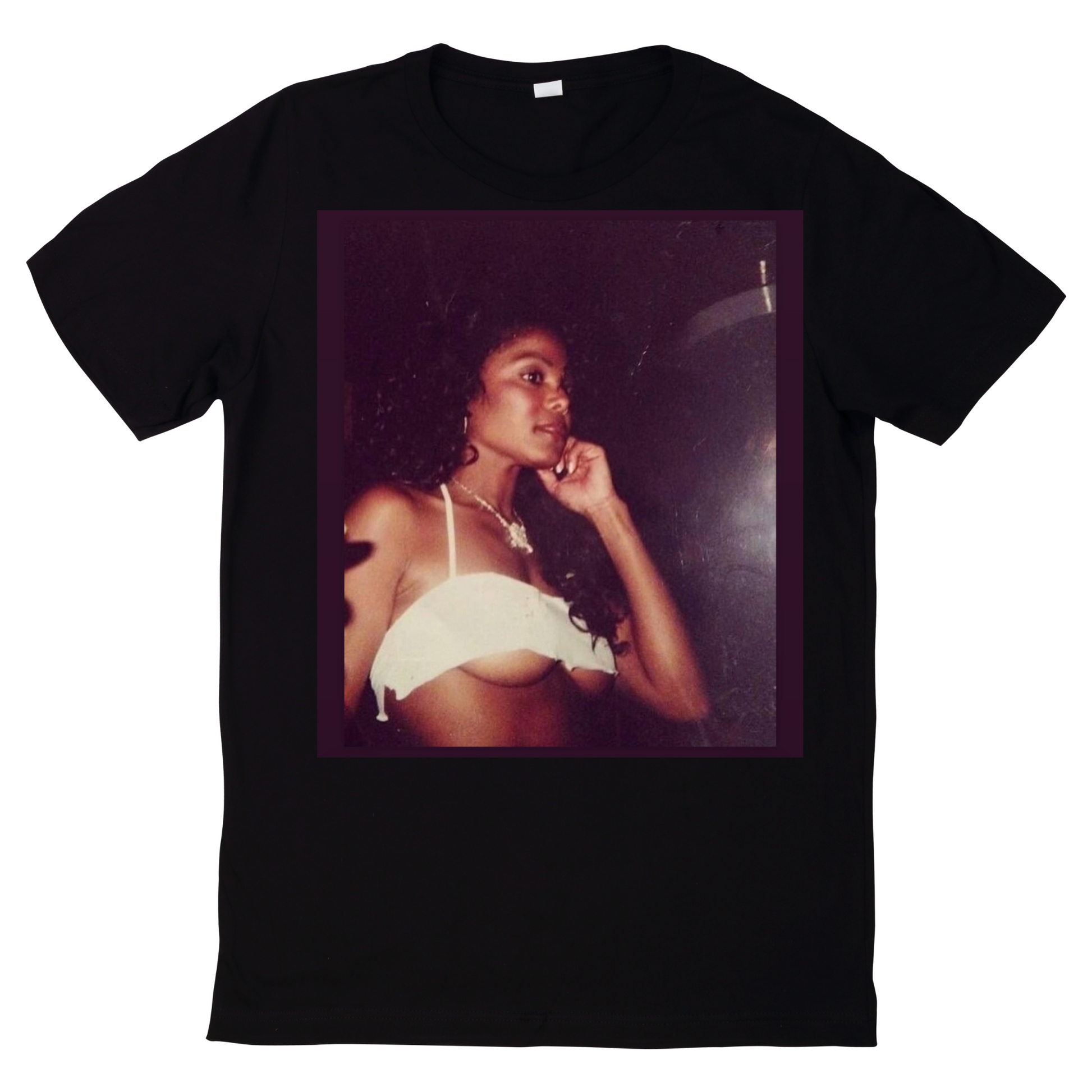 Celebrate the timeless beauty and iconic style of Janet Jackson with this exclusive t-shirt design. Capturing a candid moment from her early years, this tee showcases the effortless grace and bold spirit that has defined her legacy in music and fashion. Whether you're a long-time fan or new to her influence, this shirt is a must-have for anyone who appreciates the artistry and charisma of one of the greatest performers of all time.
